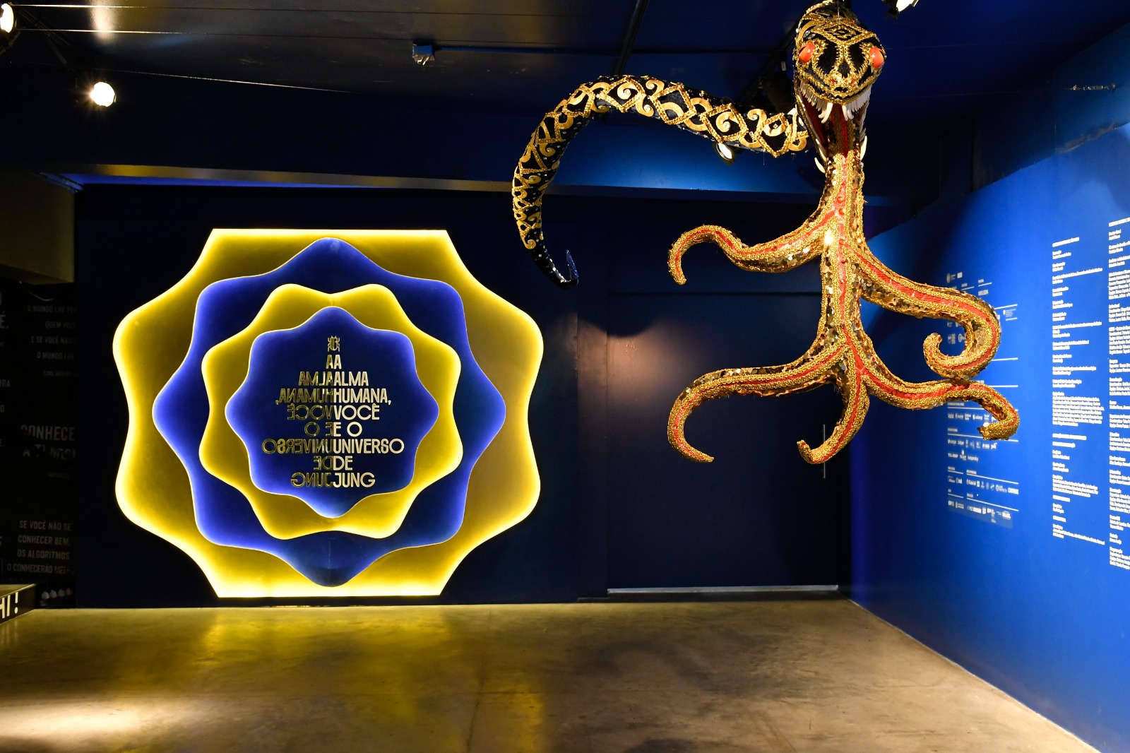 A exposição foi recriada para que o visitante possa percorrer a psique humana de forma simbólica e imagética, por meio de instalações criadas para dialogar em três diferentes dimensões: a pedagógica, já que os conceitos criados ou trabalhados por Jung serão explicados de forma acessível; a sensorial, tendo em vista que cada instalação artística pode provocar sensações no visitante; e ainda a provocativa, já que sempre haverá uma pergunta convidando o público à introspecção, movimento necessário para o autoconhecimento. Todos os conteúdos foram inspirados na cosmovisão de Carl Gustav Jung (1875 – 1961), psiquiatra suíço fundador da Psicologia Analítica e são validados pela curadoria do Instituto Junguiano de Ensino e Pesquisa – IJEP, fundado por Waldemar Magaldi e Simone Magaldi.