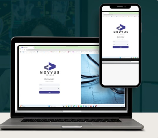 Em destaque está a plataforma Novvus Regula, concebida para auxiliar auditores médicos e equipes de regulação na análise e aprovação de exames de alta complexidade, contribuindo para reduzir uso inadequado de recursos.